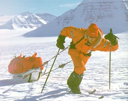 Tachtig jaar later maakt Ronald Naar (NL) dezelfde oversteek. Het grootste verschil: de noodzakelijke bagage weegt nu slechts 135 kilo per persoon en kan worden getrokken door één MK.