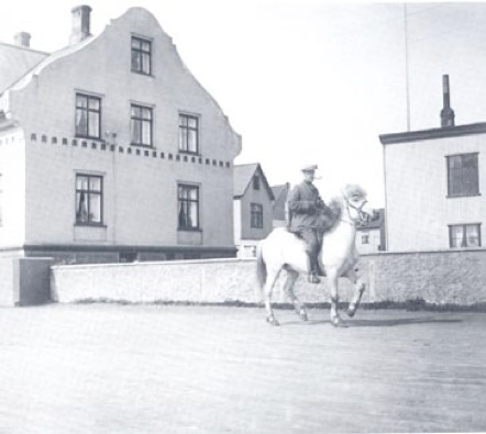 Het roken van een goede pijp na het wekelijks bezoek aan de Evangelisch Lutherse kerk in de hoofdstad bezorgt Matthías Mathíasson, op weg naar zijn huis, een intens genoegen. Aldus is er ook voldoende tijd tot overdenking van het ontvangen "geestelijk voedsel". Matthías gold jarenlang als de beste ruiter uit Reykjavík en omgeving in de twintiger jaren (de foto is genomen rond 1925).